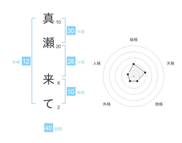 真瀬 来てさんを姓名の画数から五運を鑑定