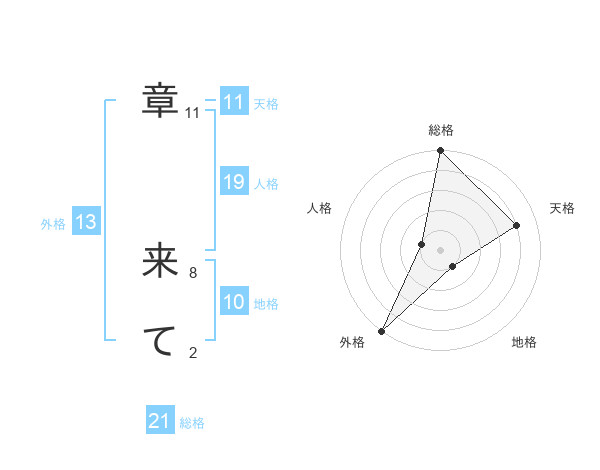 章 来てさんの総格は21画の5点!