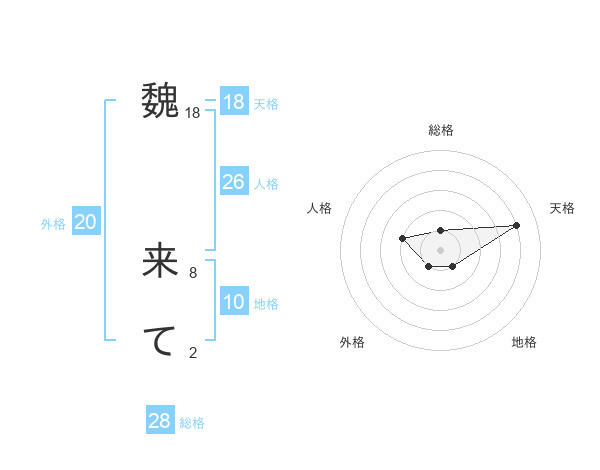 魏 来てさんの天格は18画の4点!