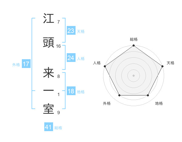 江頭 来一室さんを姓名の画数から五運を鑑定