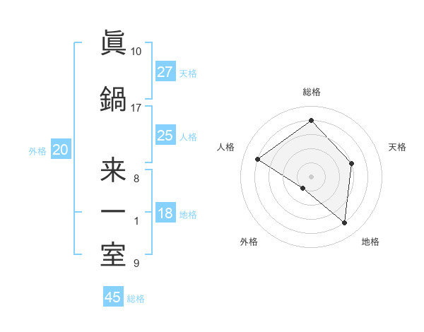 眞鍋 来一室さんの総格は45画の4点