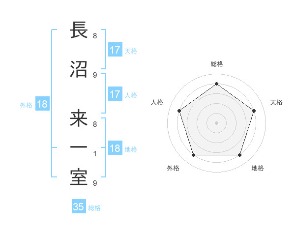長沼 来一室さんを姓名の画数から五運を鑑定