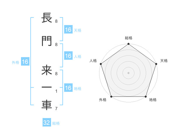 長門 来一車さんの総格は32画の5点!