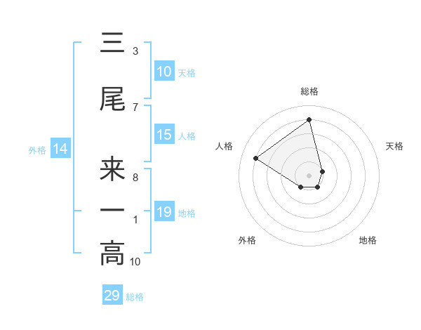 三尾 来一高さんを姓名の画数から五運を鑑定