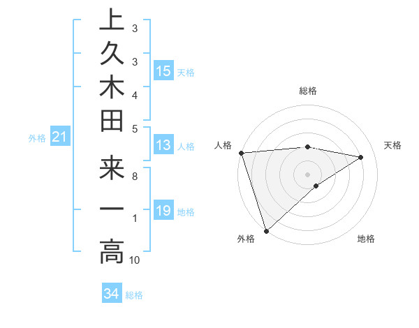 上久木田 来一高さんの外格は21画の5点!