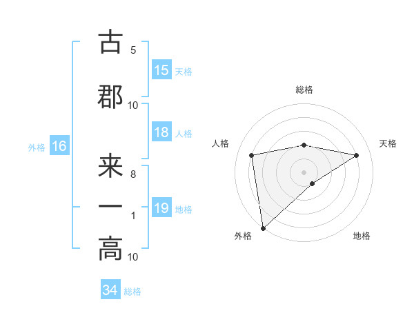 古郡 来一高さんを姓名の画数から五運を鑑定