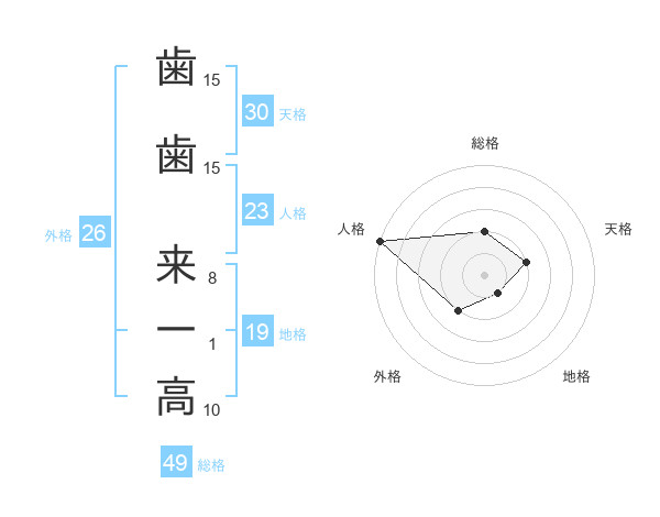歯歯 来一高さんを姓名の画数から五運を鑑定