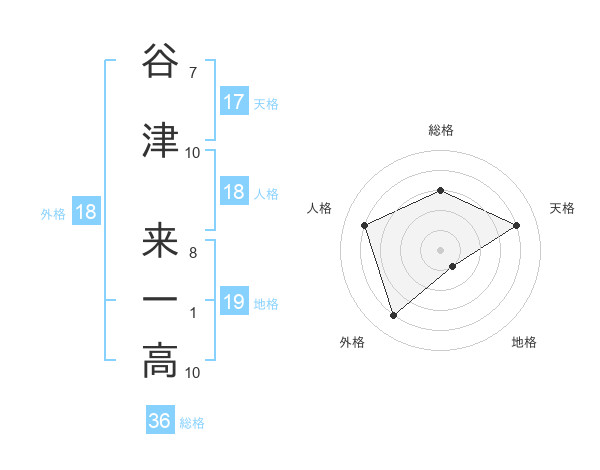 谷津 来一高さんの天格は17画の4点!