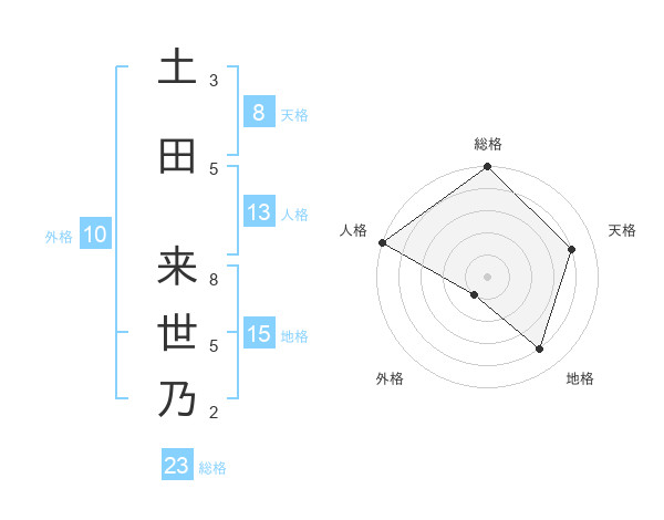 土田 来世乃さんを姓名の画数から五運を鑑定