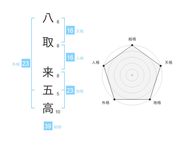 八取 来五高さんの外格は23画の5点!