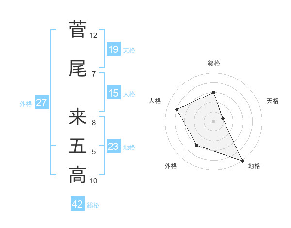菅尾 来五高さんの総格は42画の3点!