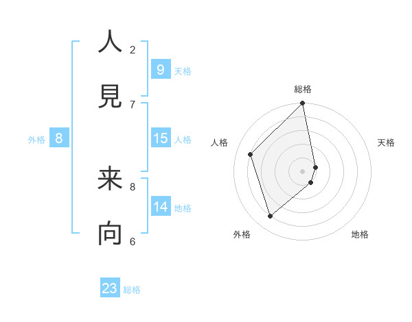 人見 来向さんの総格は23画の5点!