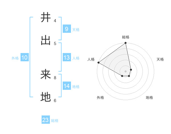 井出 来地さんの総格は23画の5点!