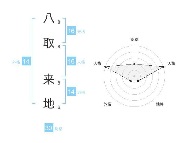 八取 来地さんの総格は30画の2点!