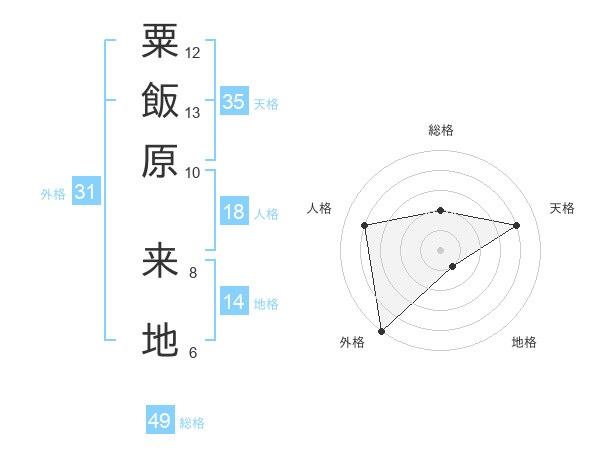 粟飯原 来地さんを姓名の画数から五運を鑑定