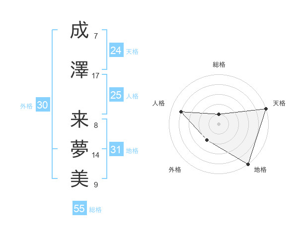 成澤 来夢美さんを姓名の画数から五運を鑑定