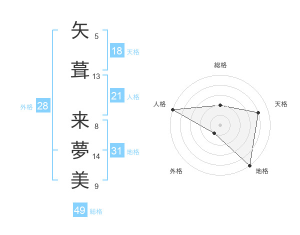 矢葺 来夢美さんを姓名の画数から五運を鑑定