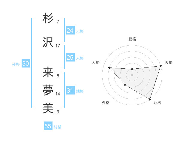 杉沢 来夢美さんを姓名の画数から五運を鑑定