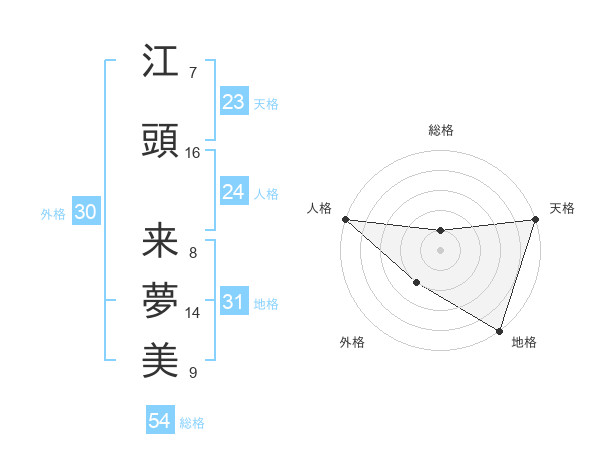 江頭 来夢美さんを姓名の画数から五運を鑑定