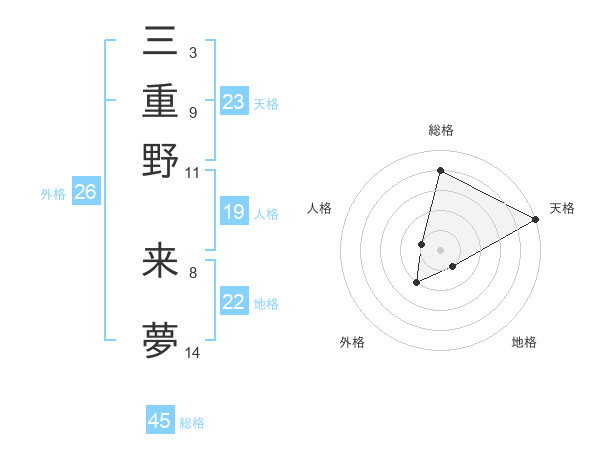 三重野 来夢さんを姓名の画数から五運を鑑定