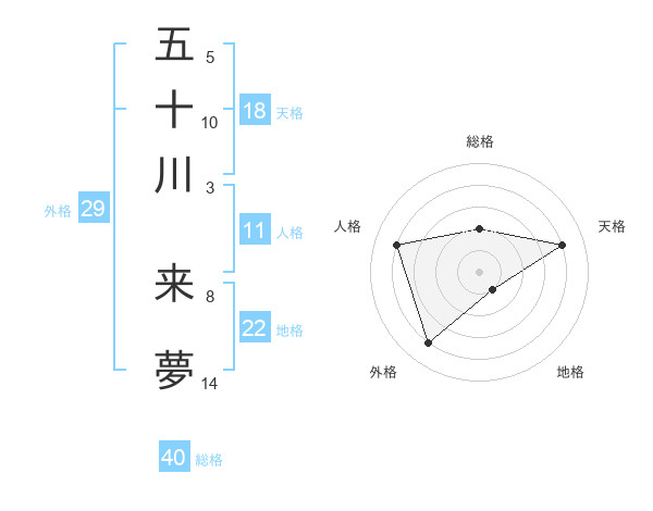 五十川 来夢さんを姓名の画数から五運を鑑定