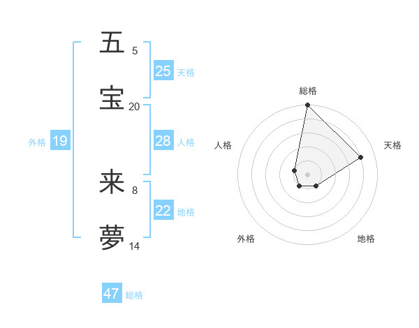 五宝 来夢さんの総格は47画の5点!