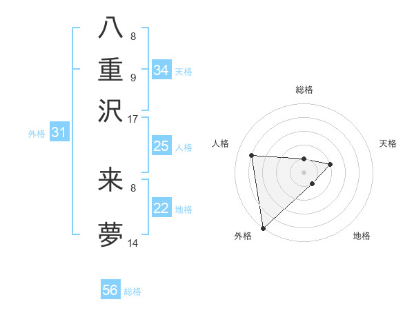 八重沢 来夢さんを姓名の画数から五運を鑑定