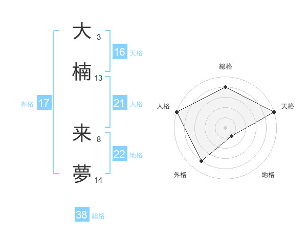 大楠 来夢さんを姓名の画数から五運を鑑定