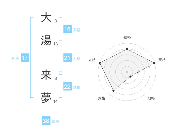 大湯 来夢さんの総格は38画の4点!