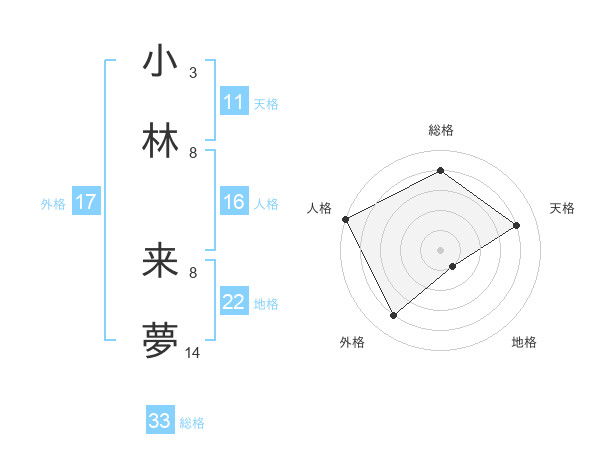 小林 来夢さんの総格は33画の4点!