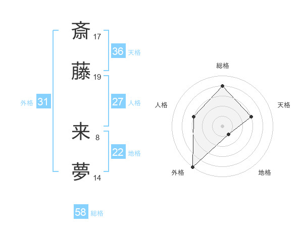 斎藤 来夢さんを姓名の画数から五運を鑑定