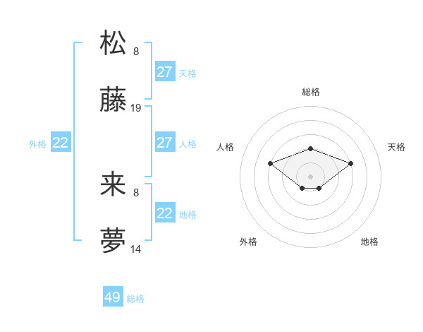 松藤 来夢さんを姓名の画数から五運を鑑定