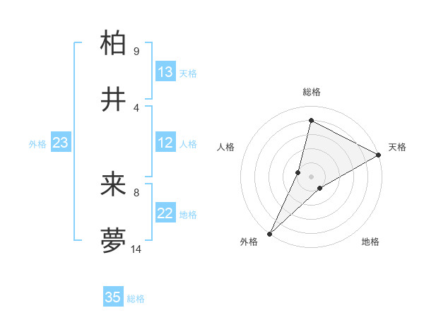 柏井 来夢さんを姓名の画数から五運を鑑定