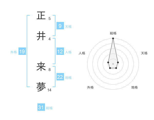 正井 来夢さんの総格は31画の5点!