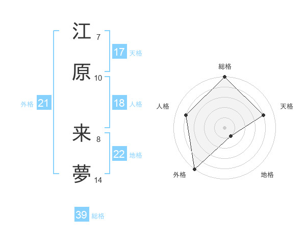江原 来夢さんの総格は39画の5点!