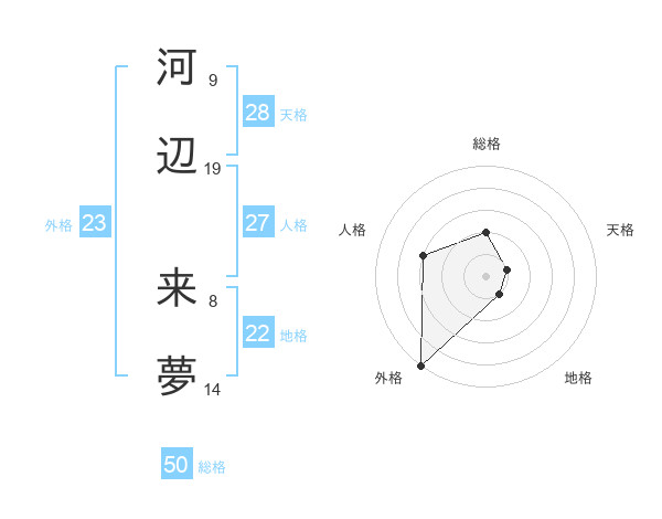河辺 来夢さんを姓名の画数から五運を鑑定