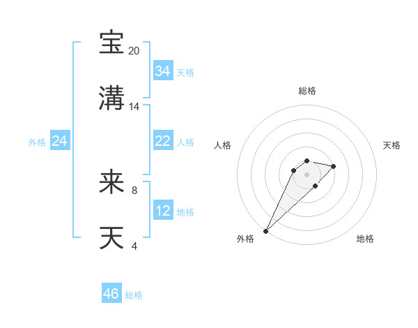 宝溝 来天さんを姓名の画数から五運を鑑定