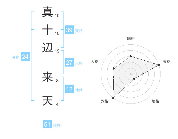 真十辺 来天さんを姓名の画数から五運を鑑定