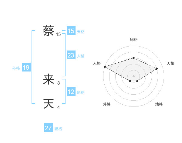 蔡 来天さんの天格は15画の4点!