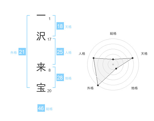 一沢 来宝さんの外格は21画の5点!
