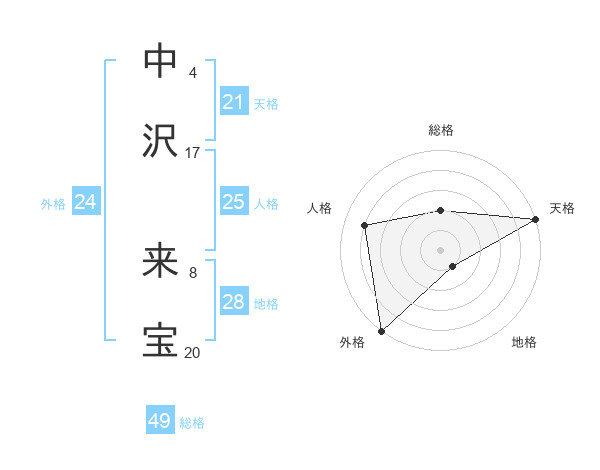 中沢 来宝さんの外格は24画の5点!