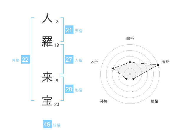 人羅 来宝さんを姓名の画数から五運を鑑定