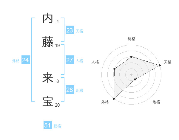内藤 来宝さんの総格は51画の3点!