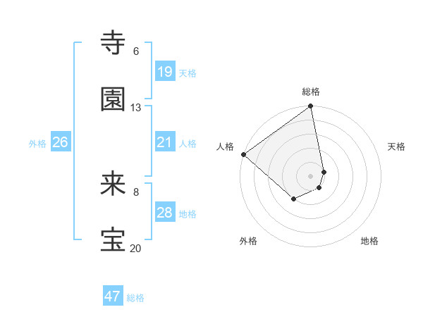 寺園 来宝さんの総格は47画の5点!