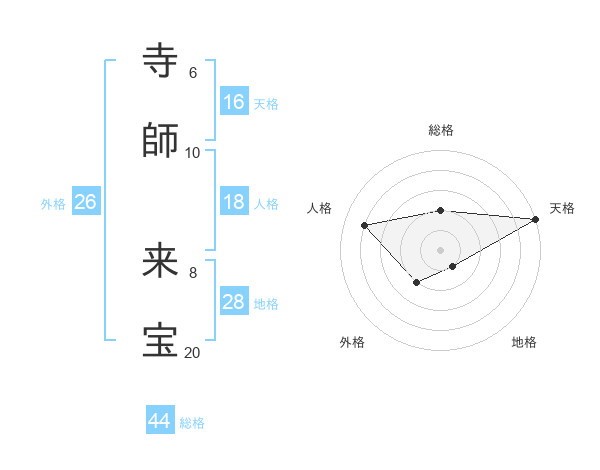 寺師 来宝さんの天格は16画の5点!