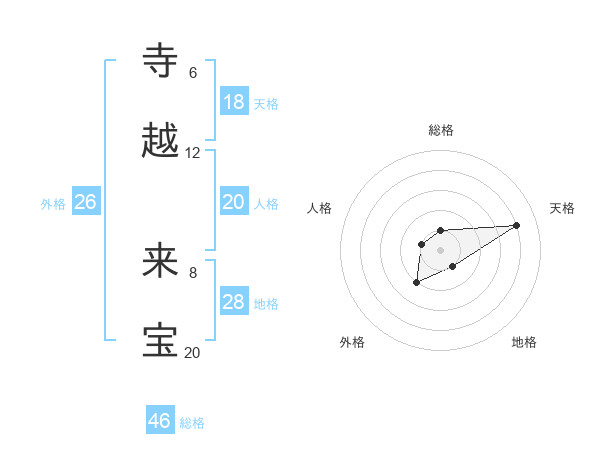 寺越 来宝さんを姓名の画数から五運を鑑定