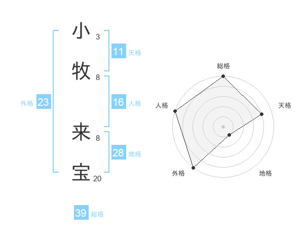 小牧 来宝さんの外格は23画の5点!