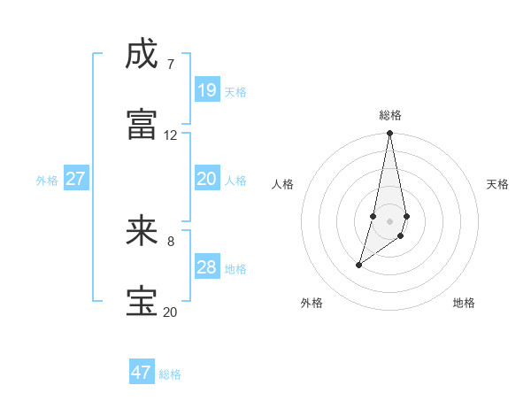 成富 来宝さんの総格は47画の5点!