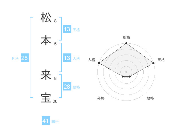 松本 来宝さんの天格は13画の5点!