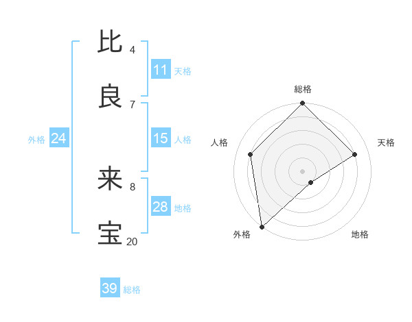 比良 来宝さんの外格は24画の5点!